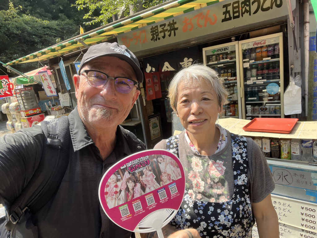 Jetlag oblige, je me suis réveillé tôt. À peine le nez dehors, sensation de respirer dans un sauna. 30 degrés à l’ombre dès le petit matin, humidité au taquet, j’avance en fredonnant Ò que calor, la chanson de Moussu T. En nage, forcément, après cinq minutes de marche vers l’immense Ueno Kōen, うえのこうえん, l’un des plus anciens parcs publics du Japon. C’est au printemps qu’il est le plus fréquenté, pris d’assaut même fin mars début avril, lorsque les Japonais viennent en famille bader les cerisiers en fleurs, les sakura, さくら. Rien de tel en été. Les centaines de cerisiers attendent leur heure. Au détour d’une allée, un kiosque à boissons et bibelots me tend les bras . – De l’eau s’il vous plaît ! お水をください! La marchande est souriante. Je suis son premier client de la journée. Comme je lui prends deux bouteilles, et pour me remercier de dire trois mots en japonais, elle m’offre un éventail en plastique à l’effigie du groupe de J-Pop, Juliana no Tatari. Avec elle, nous écoutons en rigolant un titre sur mon téléphone. La J-Pop n’est pas trop ma tasse de thé, mais le côté déjanté de la vidéo ne me déplaît pas. Je découvre que ce style musical est associé à la culture pop japonaise des années 80-90 qualifiée de « bubbly », pétillante. L’ambiance festive évoque des clubs comme Juliana Tokyo, où la dance music et les looks flashy dominaient. Il faudra que je me renseigne sur ce que signifient leurs chansons. En attendant, je remercie la dame, どうもありがとう!, et file me mettre à l’ombre, une troisième bouteille en réserve dans le sac à dos.